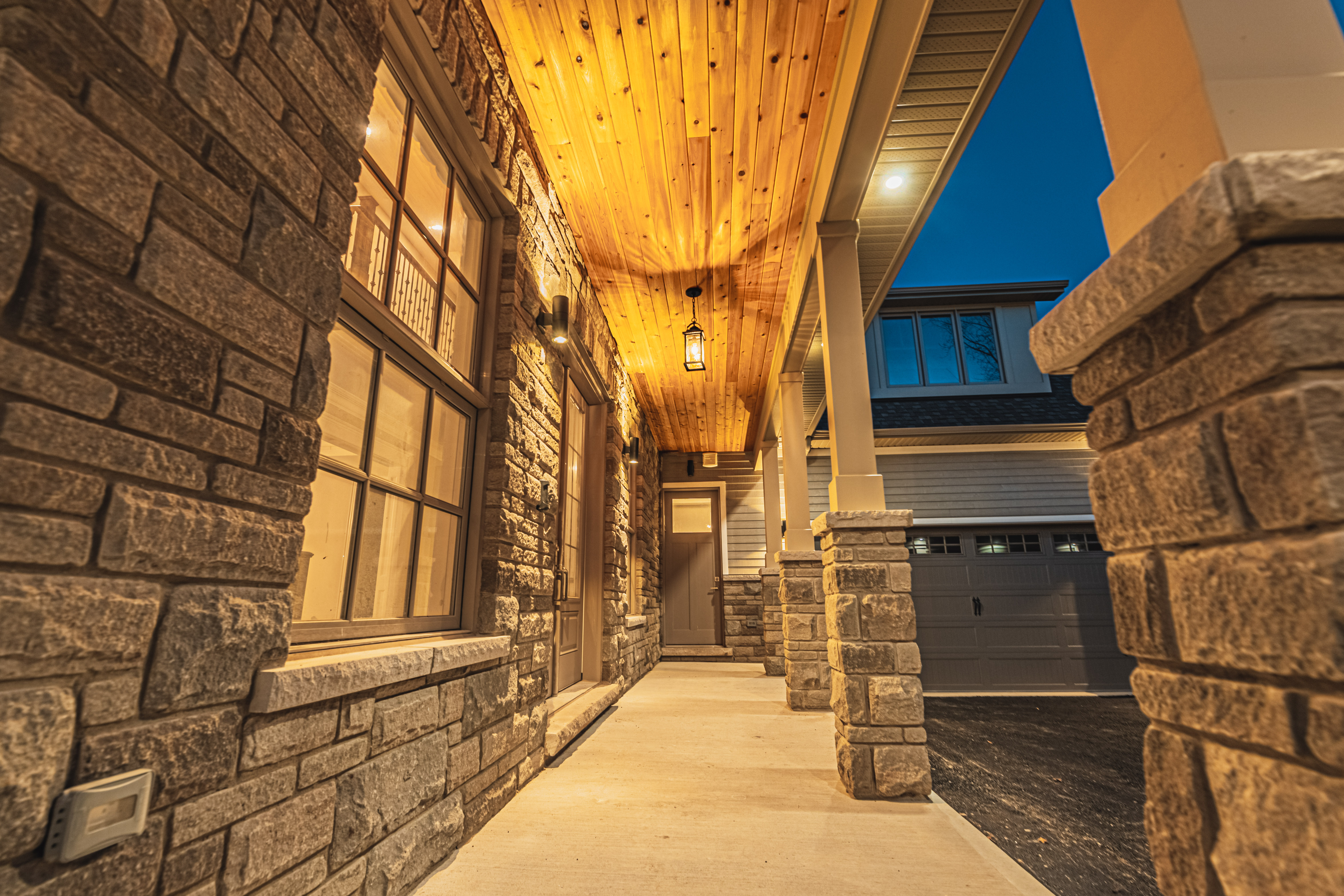 - Architecturally controlled streetscape, professionally graded and sodded lot with 1.8-2.1 meter high wood fence along lot boundaries - Self sealing asphalt roof shingles with manufacturer's 25-year warranty - Natural stone exteriors - Concrete poured front porch Maintenance-free vinyl casement windows with dual glazing, Low-E and argon gas - Windows installed with expandable air foam insulation - Premium sixteen (16') foot wide sectional roll-up garage doors - Increased attic insulation (R-60) - Two (2) exterior water taps; one in garage and one at the rear of the house - Sprinkler system with rain sensors throughout